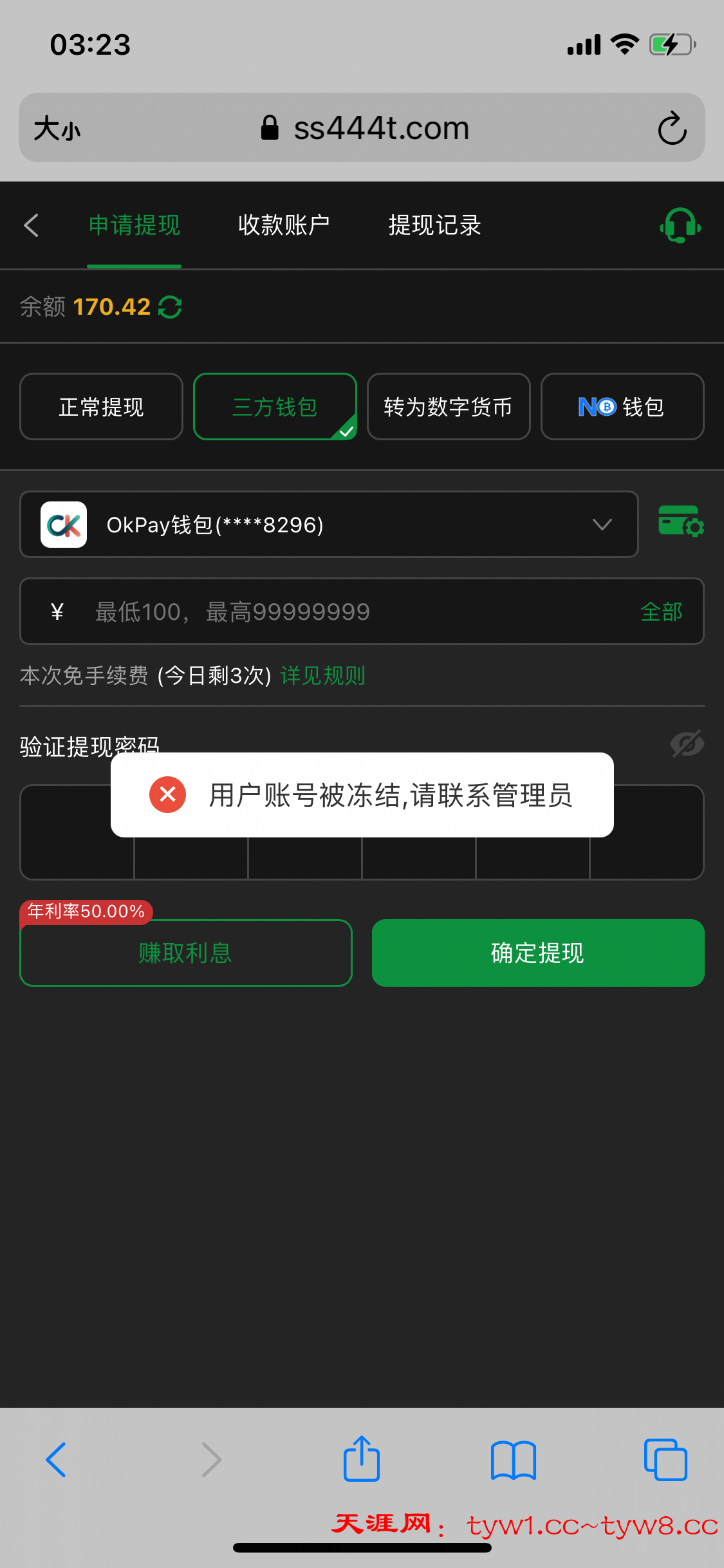 充值10块 提170冻结账号