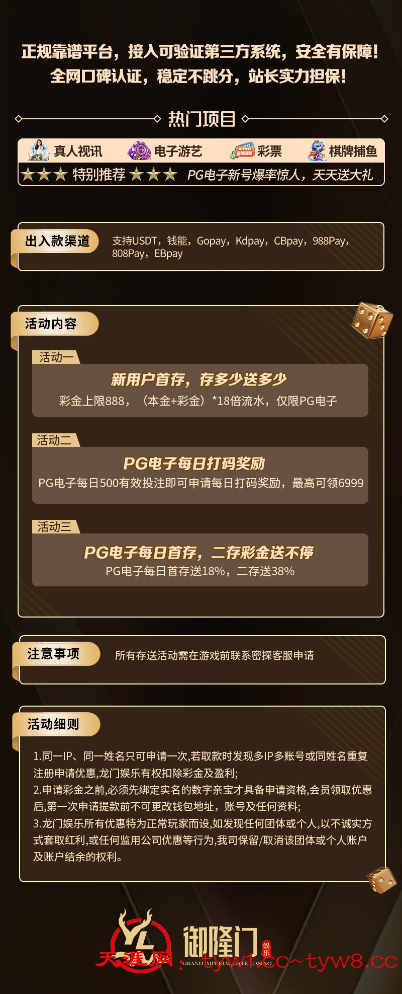 出入款渠道:支持USDT 钱能 Gopay Kdpay