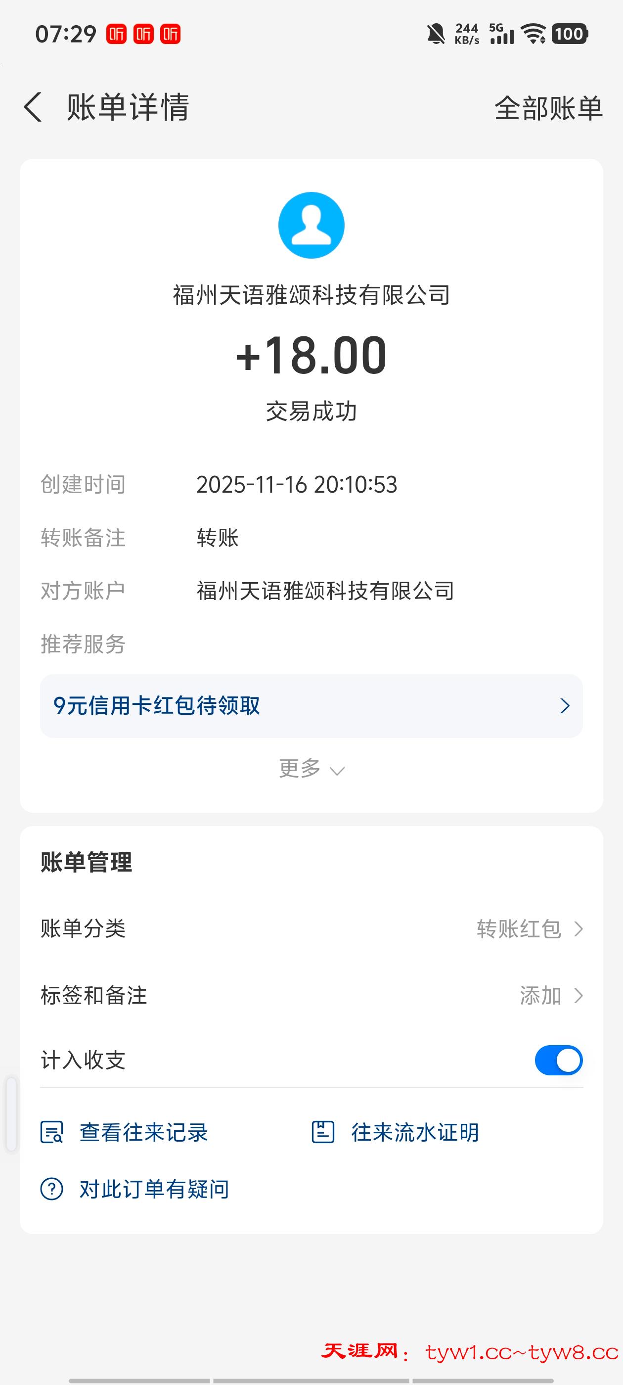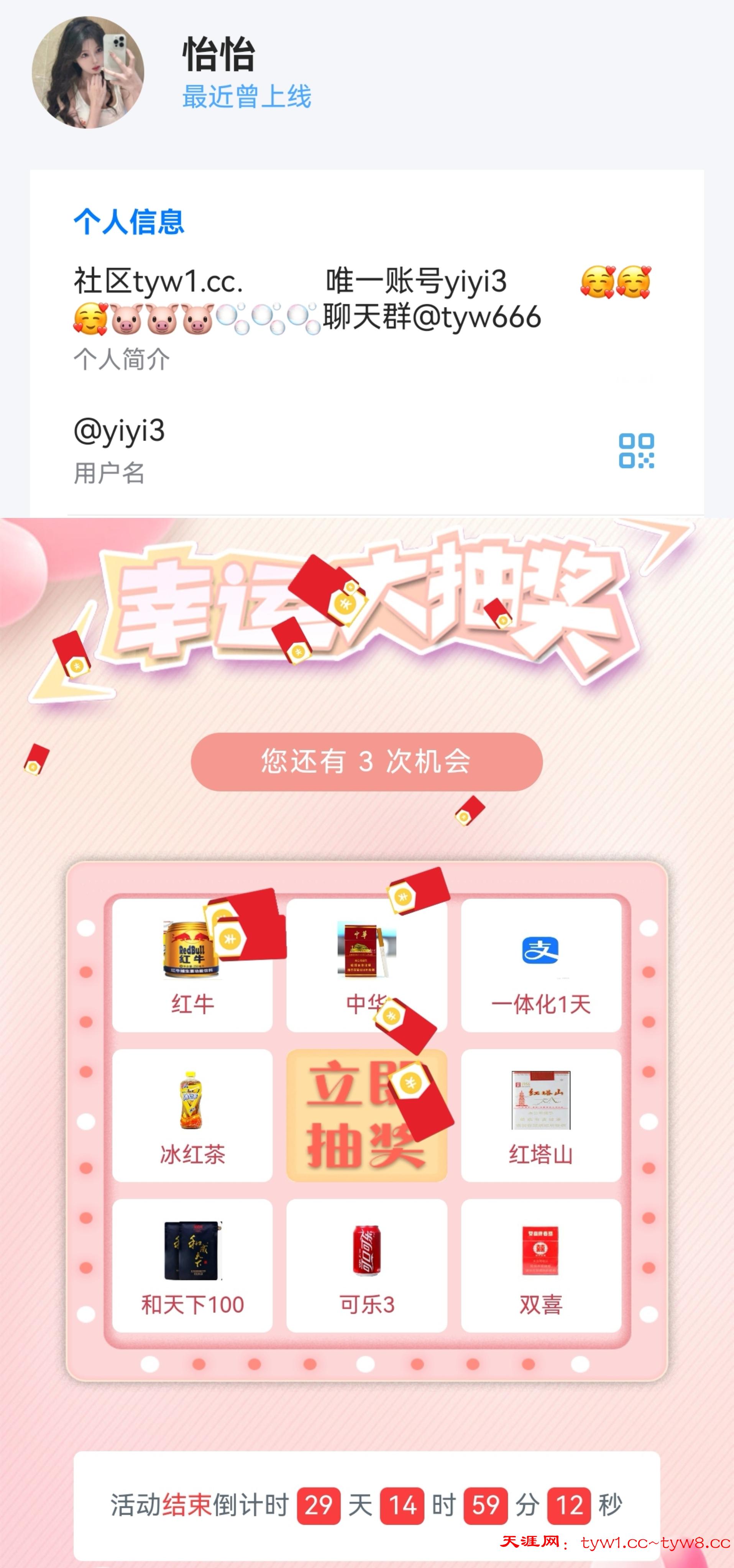 抽奖到账感谢天涯社区
