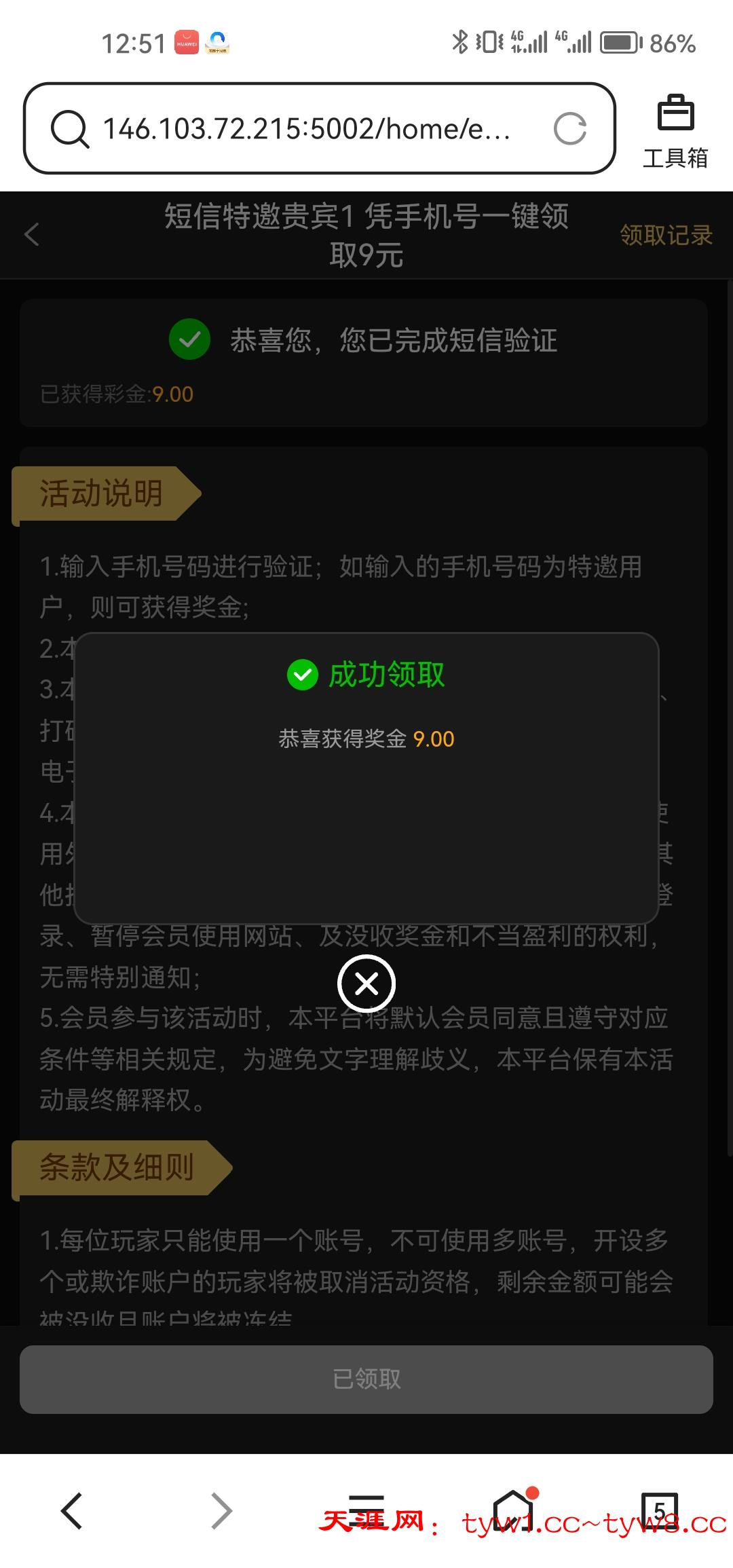 短信自助9彩金,没打出来