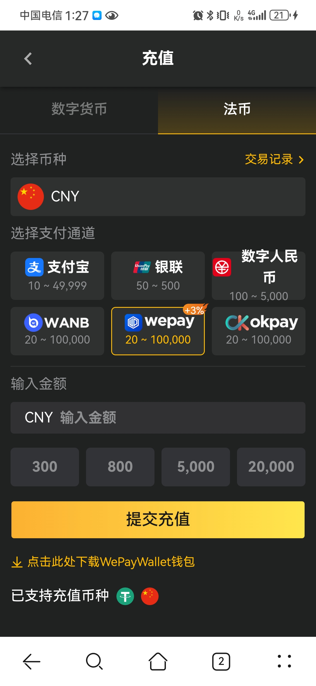 谁有支持wepay充值20的平台 给个链接